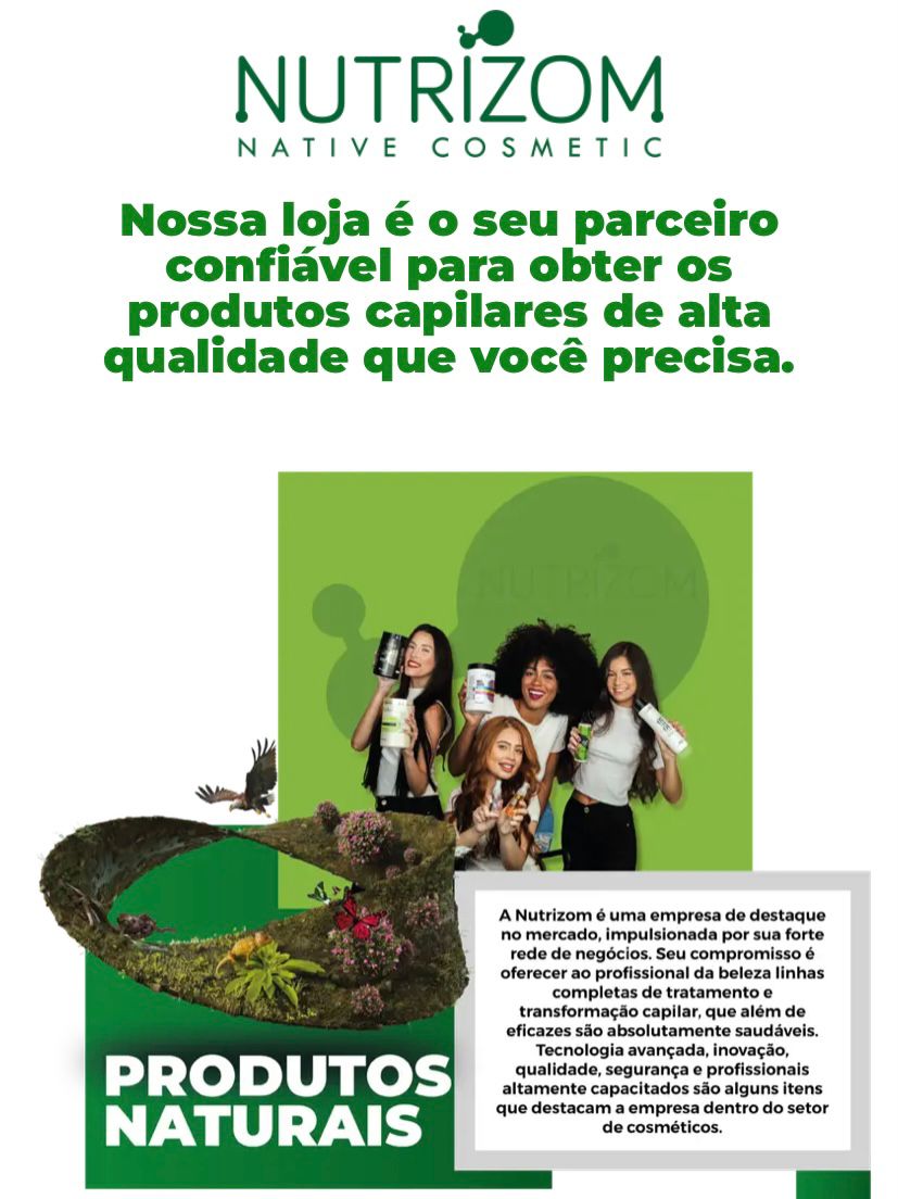 A Nutrizom é uma empresa de destaque no mercado, impulsionada por sua forte rede de negócios. Seu compromisso é oferecer ao profissional da beleza linhas completas de tratamento e transformação capilar, que além de eficazes são absolutamente saudáveis. Tecnologia avançada, inovação, qualidade, segurança e profissionais altamente capacitados são alguns itens que destacam a empresa dentro do setor de cosméticos.